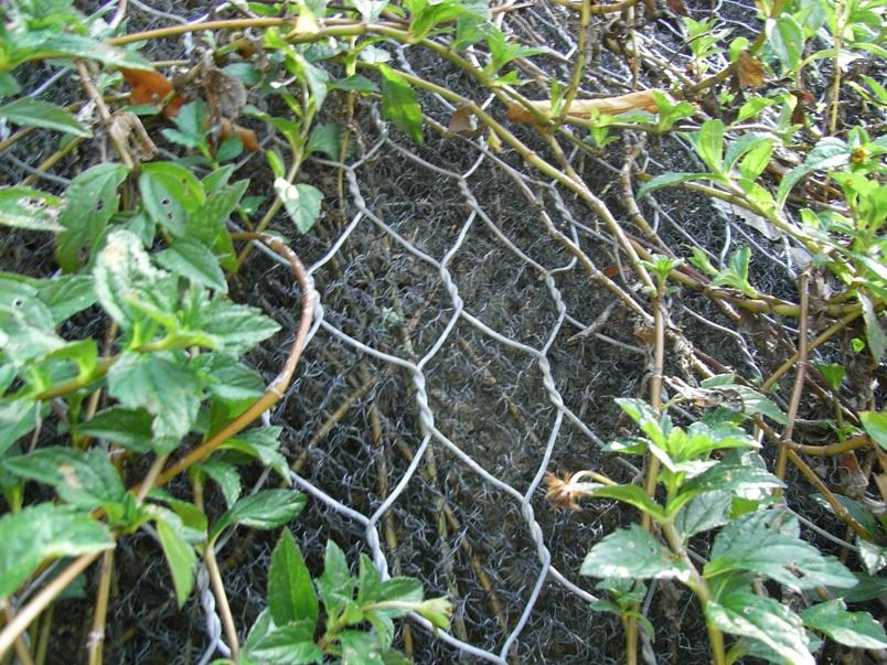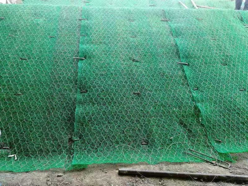 加筋麥克墊是采用鋼絲機器擰編而成雙絞格六邊形金屬網(wǎng)雙面涂覆聚丙烯PP絲狀物,用作山坡掛網(wǎng)、攔石網(wǎng)、山體防護網(wǎng)、客土噴薄用網(wǎng)、山體綠化,邊坡綠化等, 設計上不僅考慮了易于安裝,同時還考慮了在像懸崖這樣不好的地形條件下能實現(xiàn)這種安裝,即用少量的錨固和少量的開挖來實現(xiàn)快速簡便的施工安裝?;诜雷o網(wǎng)雙絞結(jié)構(gòu)的特性,即使在鋼絲破損的情況下也能夠承受落石的沖擊。