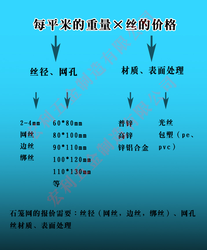 每平米的重量×絲的價(jià)格=每平米石籠網(wǎng)的價(jià)格